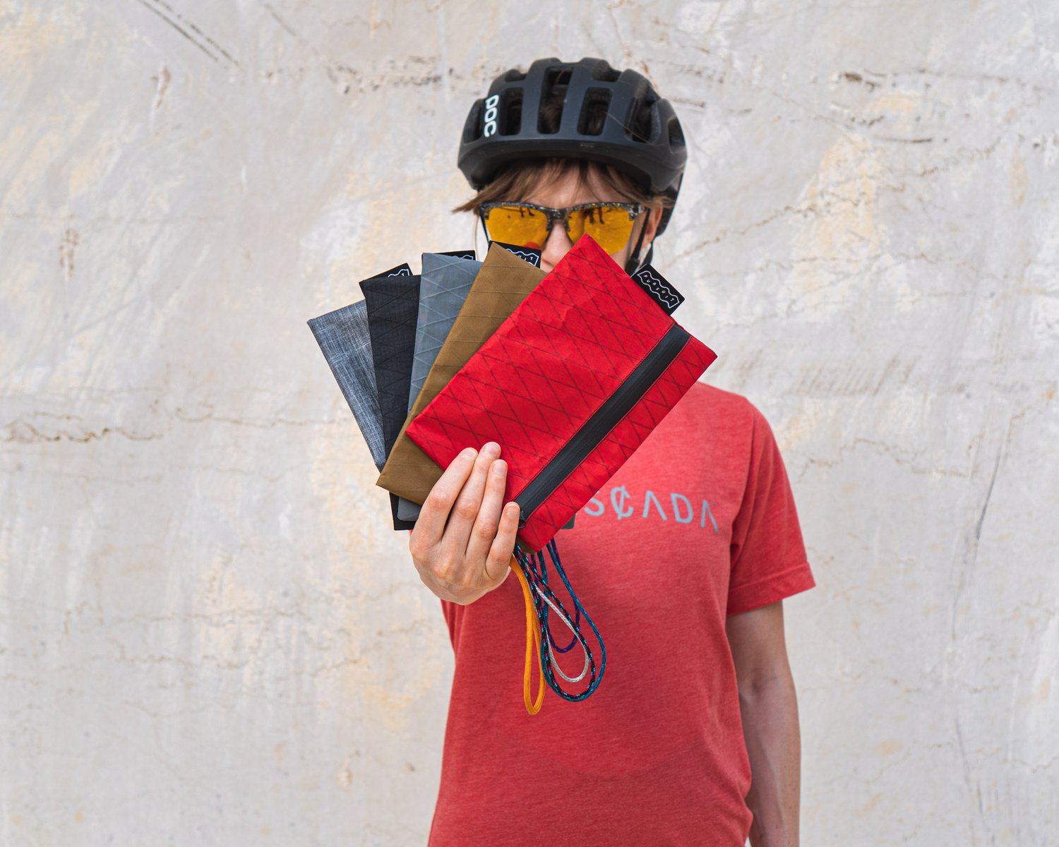 Questa busta portatutto impermeabile in tessuto X-pac sfoderato con zip YKK AquaGuard è pensata per avere sempre a portata di mano tutto quello che ti serve: perfetta per organizzare e tenere in ordine documenti, attrezzi o il tuo kit CBD nello zaino durante una giornata in città - o per trasportare medicine, spazzolino e dentifricio durante le tue avventure in bikepacking.
